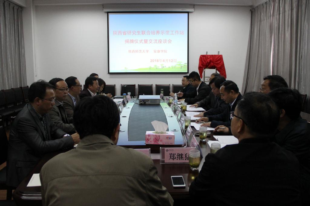 近日,陕西师范大学与安康学院在陕南民间文化研究中心会议室举行陕西省研究生联合培养示范工作站揭牌仪式暨交流座谈会。陕西师范大学文学院党委书记孙清潮、研究生院副院长王明道以及负责研究生管理工作的教师马文飞、杨远征,安康学院副校长向纪明,我校科研处处长刘强,副处长王刚、李景林,文传学院领导班子全体成员以及教授、博士参加了会议。会议由刘强主持。