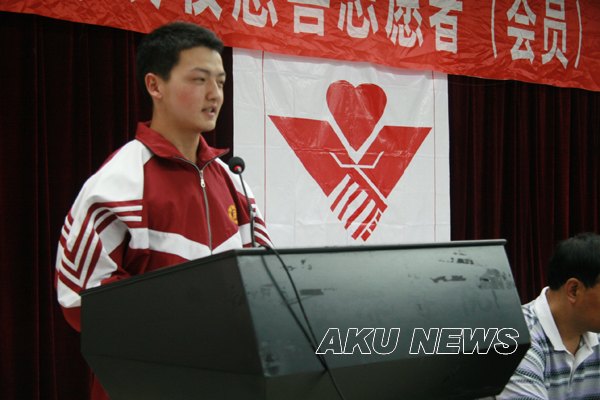 我院化学化工系学生张龙代表新会员做了发言。“感谢安康市慈善协会和安康学院能推荐和吸收我成为一名慈善志愿者。自2008年进入安康学院化学化工系以来,通过参加我系开展的许多社会公益活动,使得我明白了许多做人的道理和大学生所要肩负的社会责任”,“我们一定要把这份爱心圣火薪火相传,永不熄灭。”