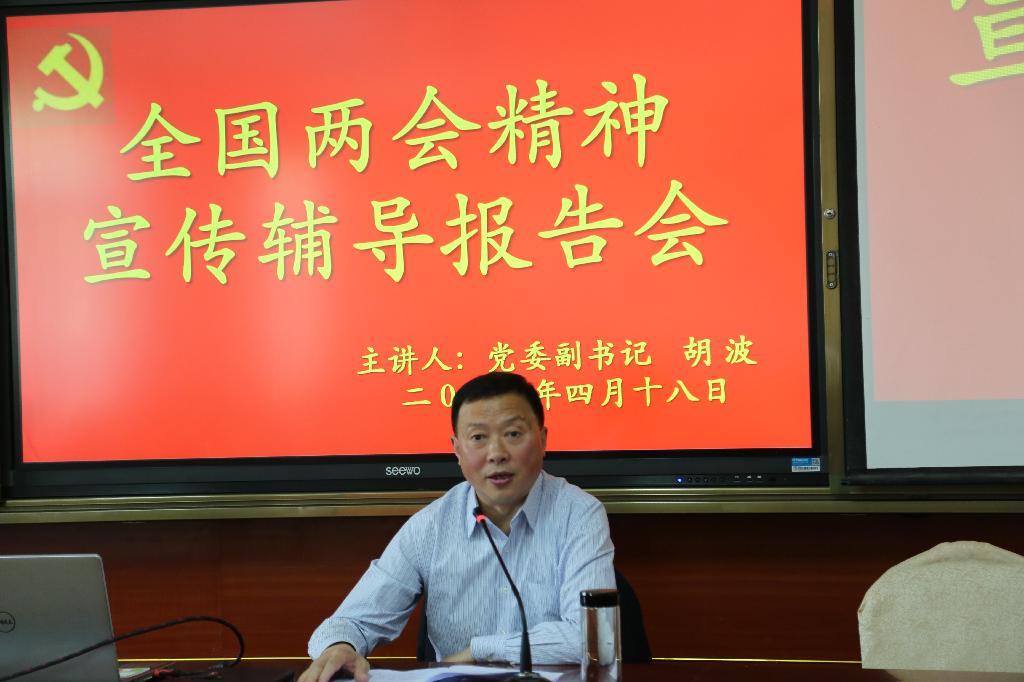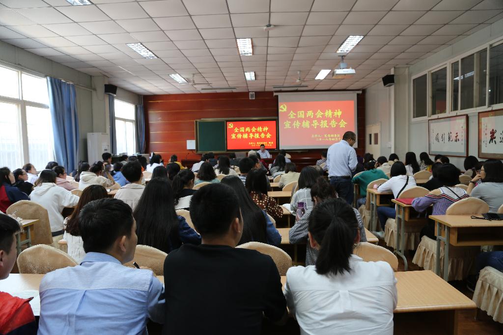 为深入贯彻学习全国“两会”精神,将广大师生的思想和行动统一到“两会”精神上来,4月18日,学校党委副书记胡波在教学楼1018室为分管的宣传部、团委、工会、后勤保障处及联系的教育学院、外语学院师生共计100余人做了全国“两会”精神宣传辅导报告会。会议由外语学院党总支书记郭家平主持。