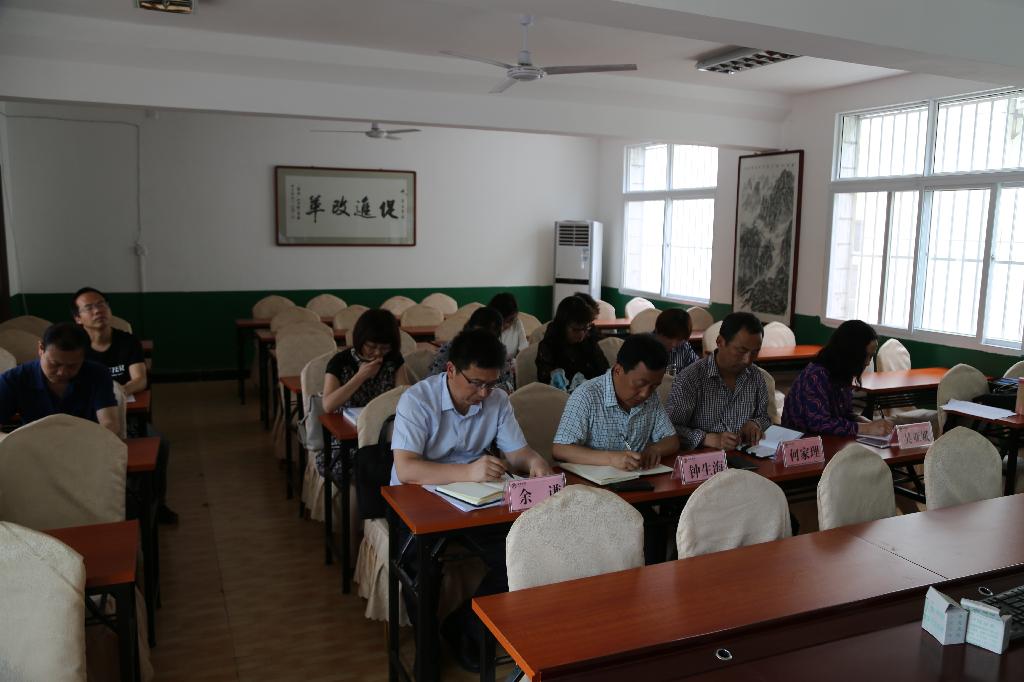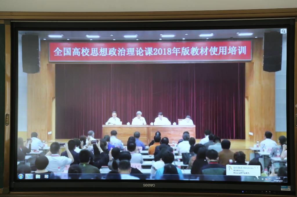 5月14日下午,全国高校思想政治理论课2018年版教材使用培训开班仪式在京举行。我校在3号教学楼会议室设立了校级分会场,副校长钟生海,教务处处长余谦,思政部主任何家理、副主任吴亚娥,思政课教研室主任李峰参加了开班仪式,有9名思政课教师参加在线直播培训。