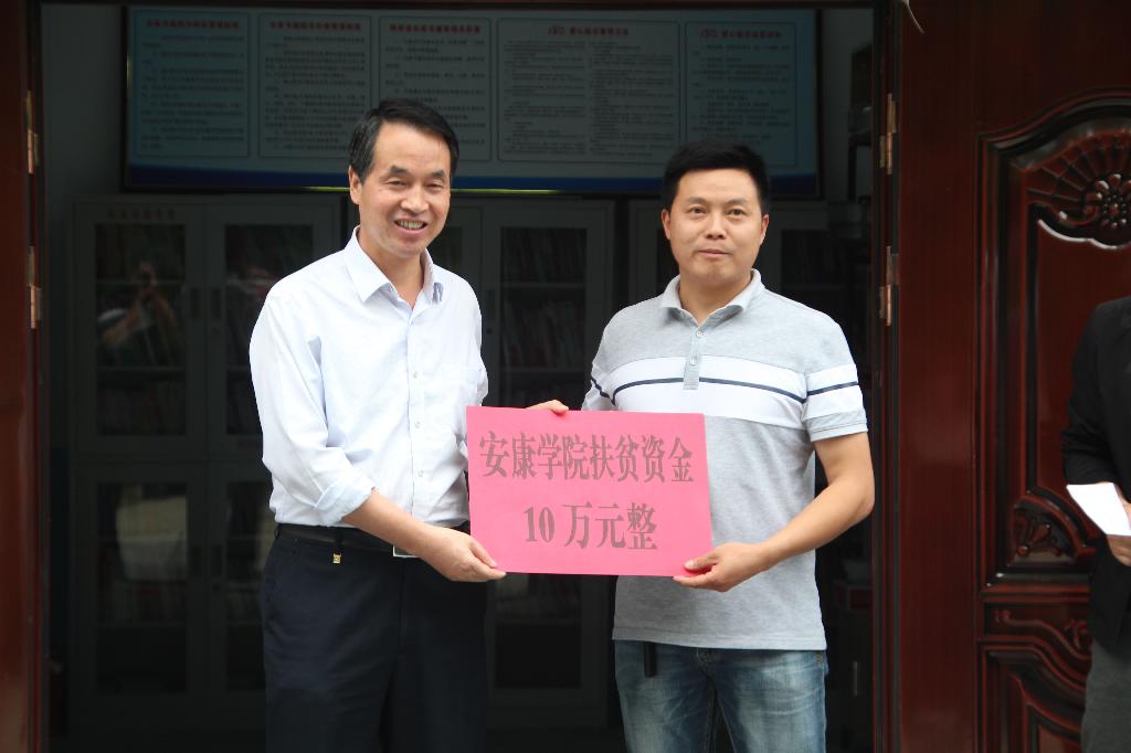 在新喜村村委会,王国良一行会同民主镇党委书记吴明刚等人参加了民主镇新喜村爱心超市的开业仪式,向纪明代表安康学院向新喜村爱心超市的开业表示热烈祝贺,就进一步做好安康学院的结对帮扶工作提出了要求。王国良代表安康学院向新喜村捐赠扶贫资金10万元。