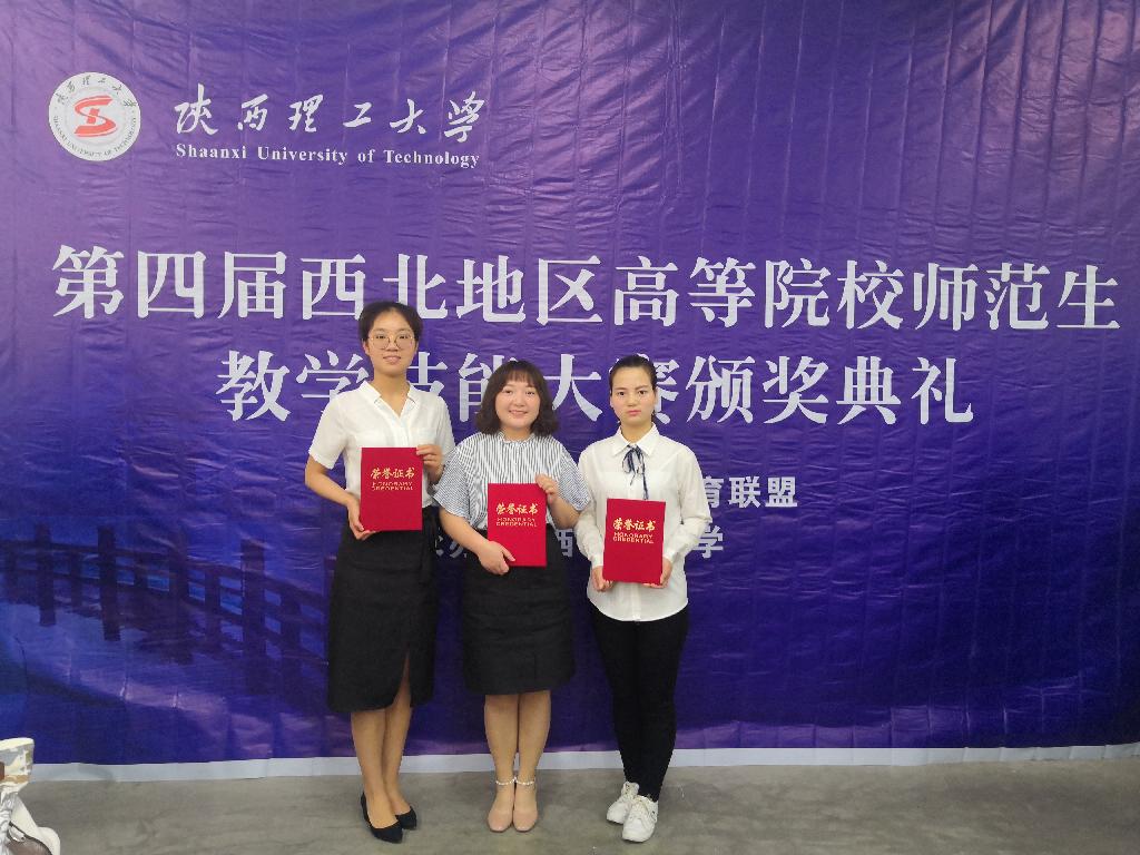 5月25日—27日,由西北教师教育联盟主办,陕西理工大学承办的第四届西北地区高等院校师范生教学技能大赛在汉中举行。来自陕西师范大学、西北师范大学、新疆师范大学、宁夏大学、安康学院等17所成员单位的49名选手参加了比赛。经过激烈角逐,我校文传学院2015级汉语言文学李萌、数统学院2015级数学与应用数学刘梦杰、教育学院2016级学前教育王金梅分别获得语文、数学、学前教育组三等奖。