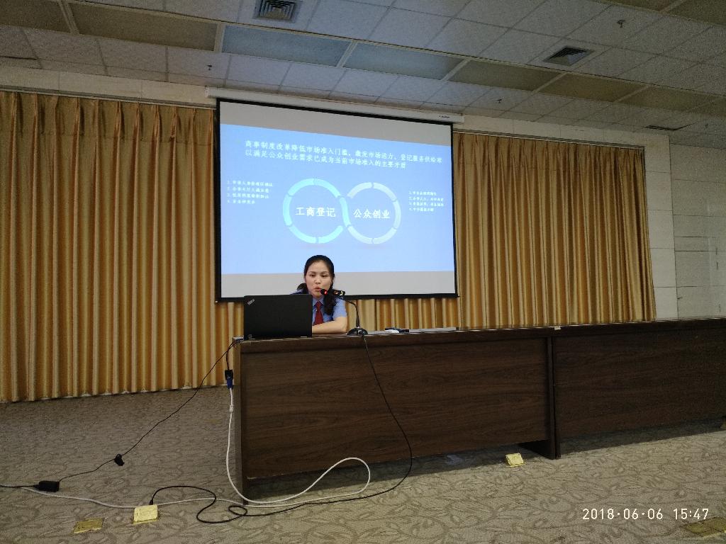 报告结合工商登记注册沿革和我省工商登记注册政策对目前最新的工商登记制度进行全面解读,围绕大学生创业最关心的话题,详细讲解了创业市场主题类型的选择、网上办事大厅登记流程、全程电子化以及微信办照流程。在答疑环节中,主讲人与学生积极互动,耐心地帮助学生解答疑惑。
