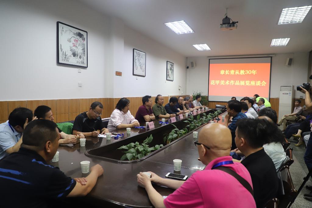 展览完毕,与会嘉宾齐聚一堂,举行了章长青画展研讨会。