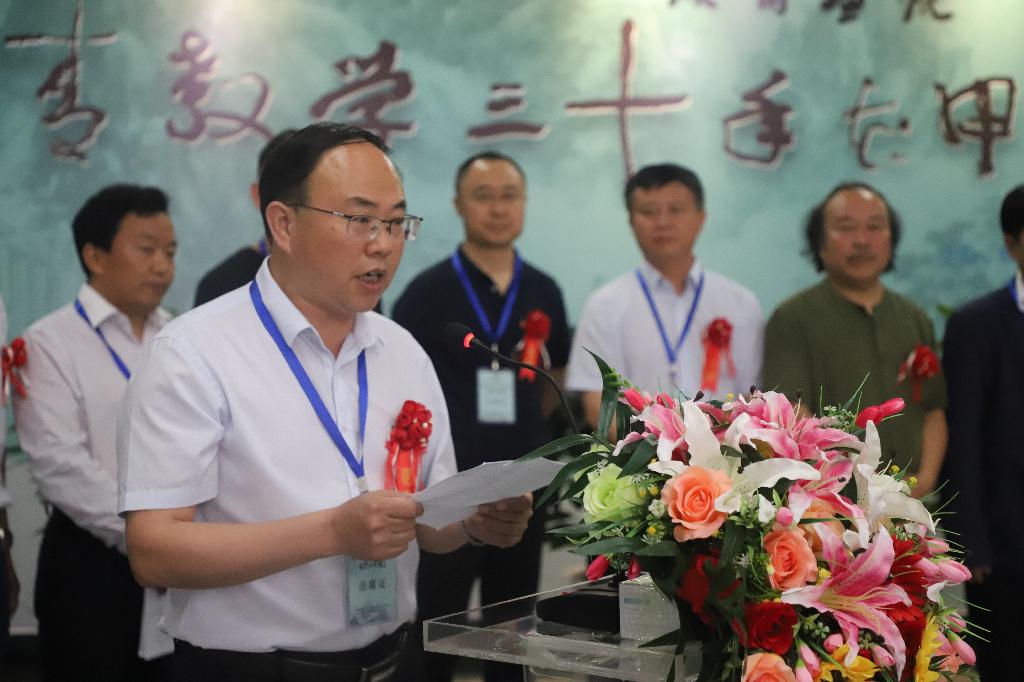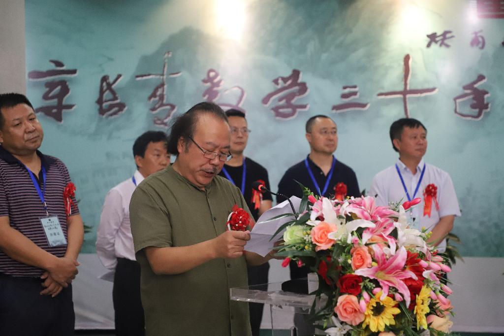 杨行玉代表学校对章老师成功举办从教三十年花甲美术作品展表示热烈的祝贺,他指出,章长青老师多年来坚持教学一线,为人师表,言传身教,爱生如子,勤耕不辍育桃李,妙手丹青写春秋,为学校美术人才培养付出了艰辛与汗水,取得了丰硕的成果。本次画展是安康市龙舟节系列旅游活动之一,以山魂水韵美安康为主题,展出了章长青老师创作的100余幅书画作品,凝聚着他对中国传统绘画艺术的不懈追求、对教学研究的潜心修炼和对安康学院的一片赤忱之心,既是章长青老师30年教学成果的集中展示,也是对我校服务地方文化的有力体现。