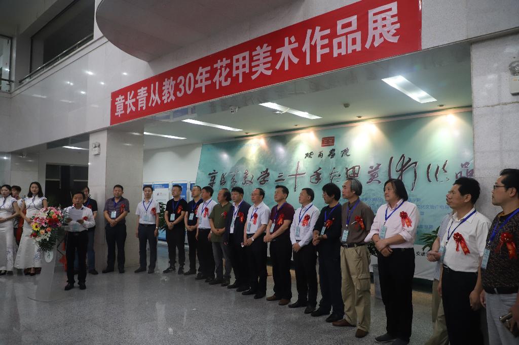 6月18日上午,由陕西省美术家协会、安康学院、安康市文学艺术联合会、安康市文化文物广电局主办,安康艺术学院、市美协、陕南画院等承办的章长青从教三十年花甲美术作品展在安康学院江南校区图书馆隆重举行。省美术家协会党组书记吕峻涛、安康市文广局局长杨海波、市文联党组书记李康林、省书法协会副主席马昌琪、省美协副主席李剑平,安康学院党委副书记胡波、副校长杨行玉、钟生海及我校艺术学院部分师生共计百余人参加了开幕式。开幕式由钟生海主持。