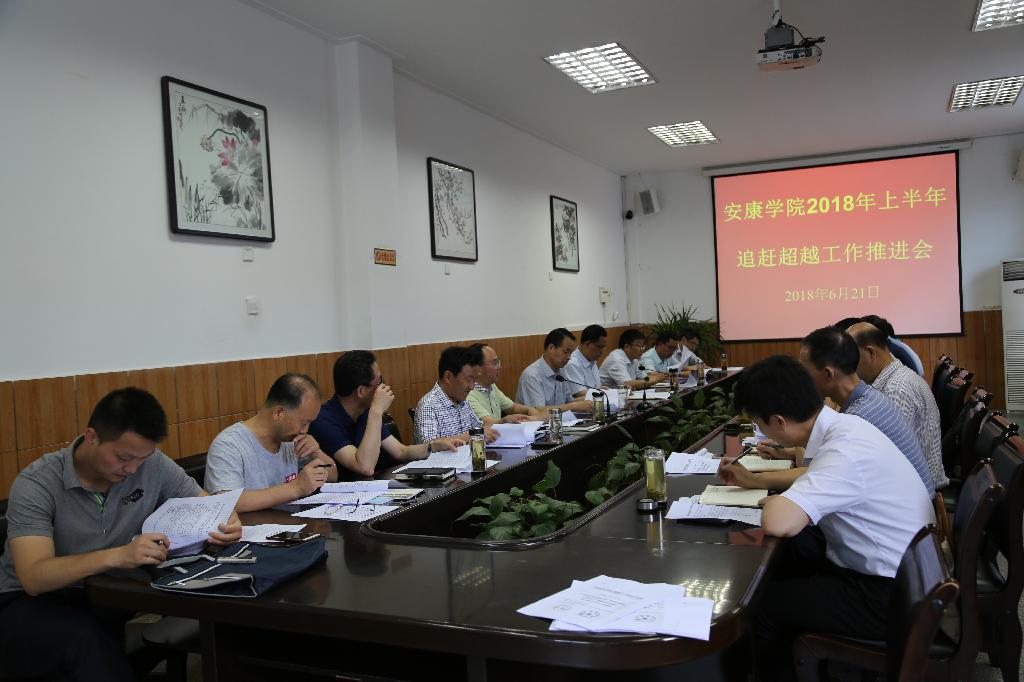 6月21日上午,我校在江南校区第一会议室召开2018年上半年追赶超越工作推进会。学校领导、相关职能部门负责人参加了会议,会议由副校长向纪明主持。