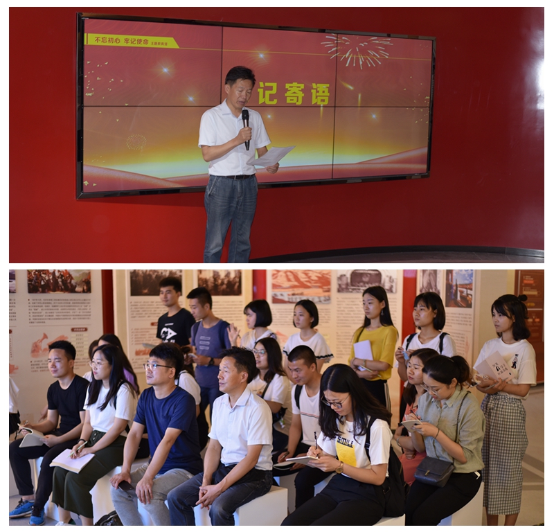 参观学习中,学院党总支书记张立虎为全体毕业生党员及新进党员上了一堂生动的党课,进行了主题党日寄语。他勉励大家要爱国、励志、求真、力行,成为社会主义建设者和接班人,不辱时代使命,不负人民期望。
