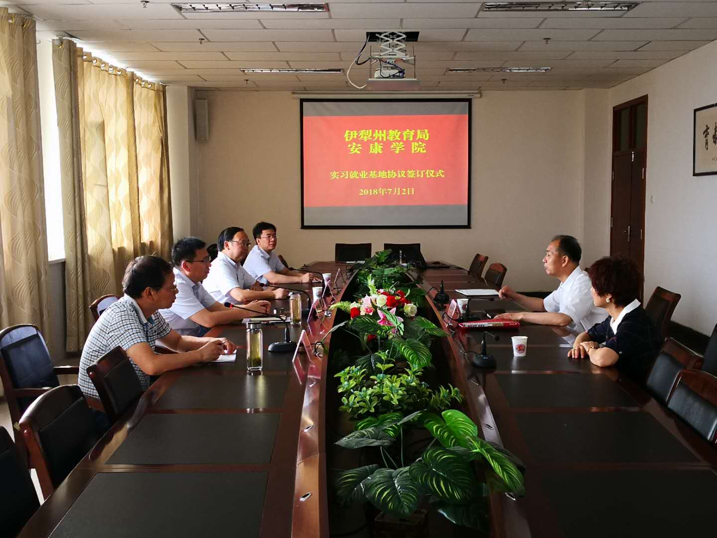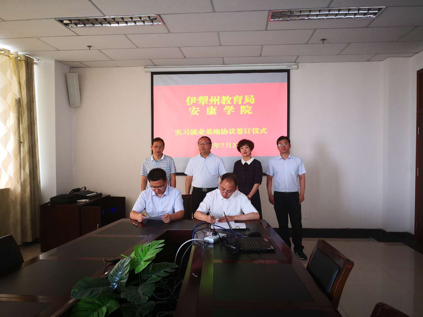 经过协商交流,余谦代表我校与伊犁州教育局签署了《安康学院-伊犁州教育局合作共建实习就业基地协议》。伊犁州党委教育工委常务副书记、局党组副书记程本康同志代表伊犁州教育局在协议上签字,郭春青同志出席了签字仪式。