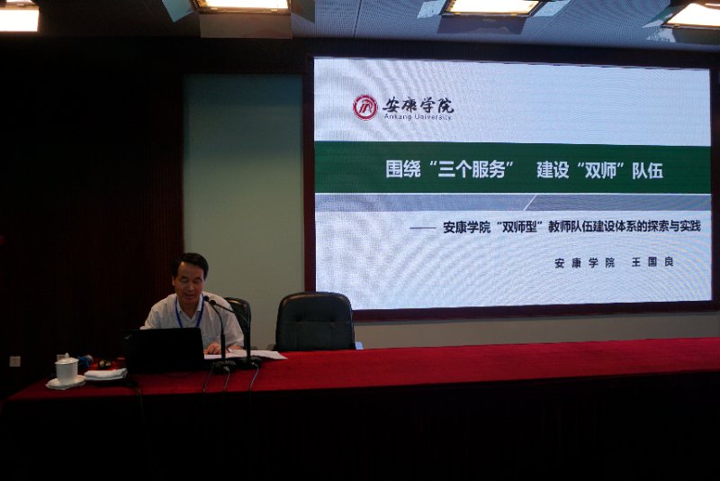 党委书记王国良以《围绕“三个服务”定位,建设“双师”教师队伍》为题在大会交流发言。交流中,他简要介绍了安康学院的基本情况、发展战略、办学定位和转型发展取得的成绩;从“双师型教师认定计划”、“双平台引进计划”、“行业企业挂职培养计划”、“学科首席专家拓展计划”和“行业企业外聘教师聘任计划”等5个方面,详细说明了我校加强“双师型”教师队伍建设的理念、举措;从我校“双师型”教师队伍建设中数量、质量的稳步提升,为专业结构优化、应用型人才培养质量和服务地方能力提升提供了强有力的人才保障,得到地方政府高度认可,有效保障了“三服务”办学定位的落实,赢得省市政府对学校的大力支持等方面交流了我校加强“双师型”人才队伍建设所取得的显著成效。