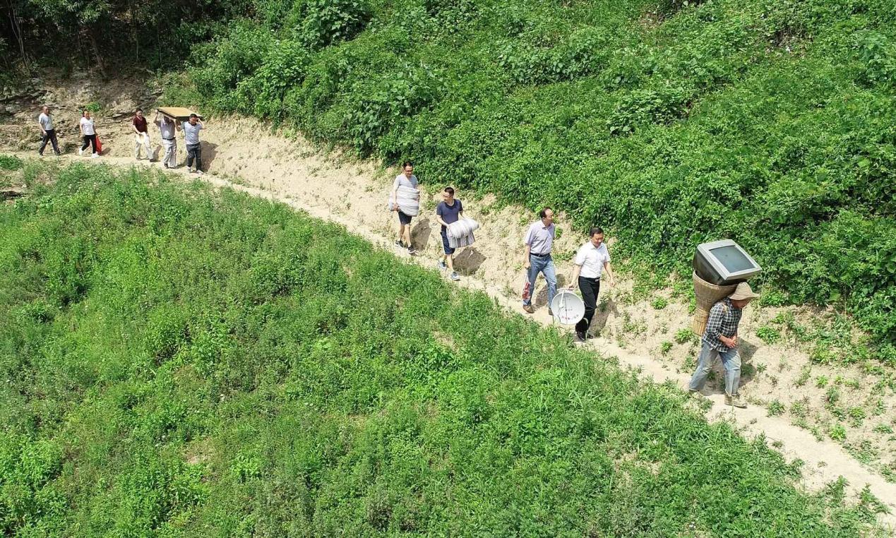 7月25日还是一个特殊的日子,是村上原来唯一不通水电的五保户杨发利搬家的好日子,现在,杨发利在镇村党组织和安康学院的帮助下新家落成,水电到户,胡书记和驻村工作队用手拉肩扛的方式,烈日下沿山路步行几里路,为杨发利家中送去了电视机、卫星信号接收器、被褥、架子床等生活用品。