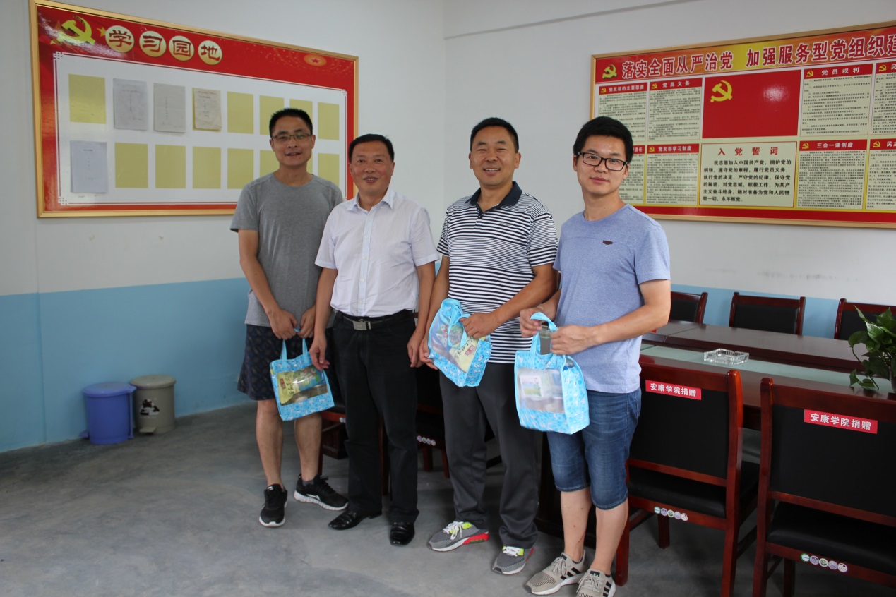 在新喜村党支部活动室,胡波代表学校向不畏酷暑坚守脱贫攻坚一线的扶贫工作队送去了防暑降温慰问品,与驻村工作队及镇村干部进行了座谈交流,听取了扶贫工作队对今年新喜村户脱贫、整村脱贫、产业发展及新民风建设等扶贫工作情况及存在的困难和问题的汇报。