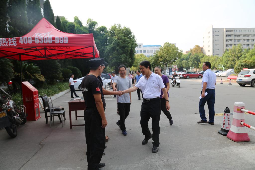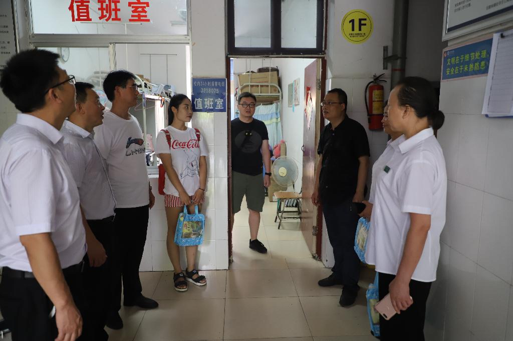 在学校值班室、教务处、招就处、继教院、审计处、国资处、后勤处、保卫处、基建处、棚改办,校领导分别与坚守岗位的同志们亲切交谈,详细询问各项工作的具体进展情况,代表学校向工作人员表示诚挚的感谢,并嘱咐大家在做好工作的同时,要注意防暑降温、保重身体。