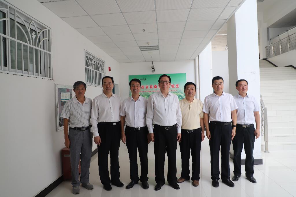 李玉赋参观了我校省级蚕桑重点实验室,看望慰问了我校省级劳模,并开展座谈交流。学校党委书记王国良就学校服务地方社会经济发展等情况做了汇报。省级劳模、省级蚕桑重点实验室主任刘强从畜牧养殖技术推广、学校科研创新和劳模在科研工作方面示范带头作用的发挥情况等做了交流发言,省级劳模、研究员胡必利就自己深入基层、三十年如一日开展野桑蚕选育、成果推广等做了交流发言。