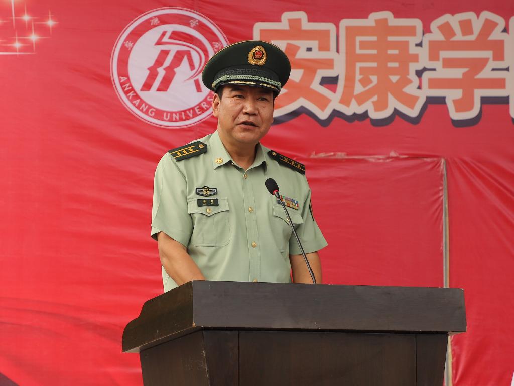 中国人民武装警察部队安康武警支队支队长杨智做了军训动员,他向即将参加军训的2018级新生表示热烈祝贺,希望广大新生把“娇骄”二气扔到一旁,把“坚强”带到操场;把“安逸”锁进抽屉,把“不悔”写入青春,勇于吃苦,敢于锻炼,展现新一代青年学生意气风发、朝气蓬勃的精神风貌。杨智还要求承训教官科学组训、文明施训,确保质量和安全,高标准的完成军训任务。