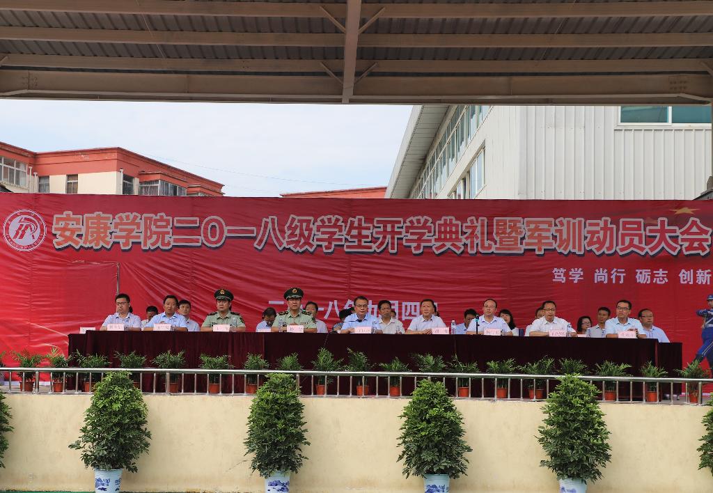 9月4日上午,安康学院2018级新生开学典礼暨军训动员大会在江南校区体育场隆重举行。校长丁巨涛,党委副书记胡波、杨行玉,副校长向纪明、钟生海,各二级学院院长、党总支书记、相关职能部门负责人及中国人民武装警察部队安康武警支队支队长杨智、副参谋长王伟等出席大会并在主席台就坐。近2900名英姿飒爽的新生与承训部队教官齐聚体育场,以庄严的开学典礼和为期两周的紧张军训,开启人生的崭新一页。