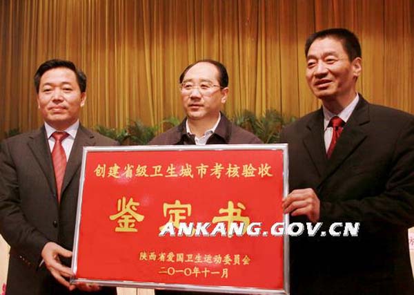 10日上午,安康市创建省级卫生城市考核验收结果通报会在我院西校区大礼堂召开,市委书记、市人大主任刘建明和市委副书记、市长方玮峰从副省长、省爱卫会主任、省考核验收团团长郑小明手中接过了省级卫生城市考核验收鉴定书,这标志着安康市历经880天的创卫工作顺利通过省级卫生城市考核验收。