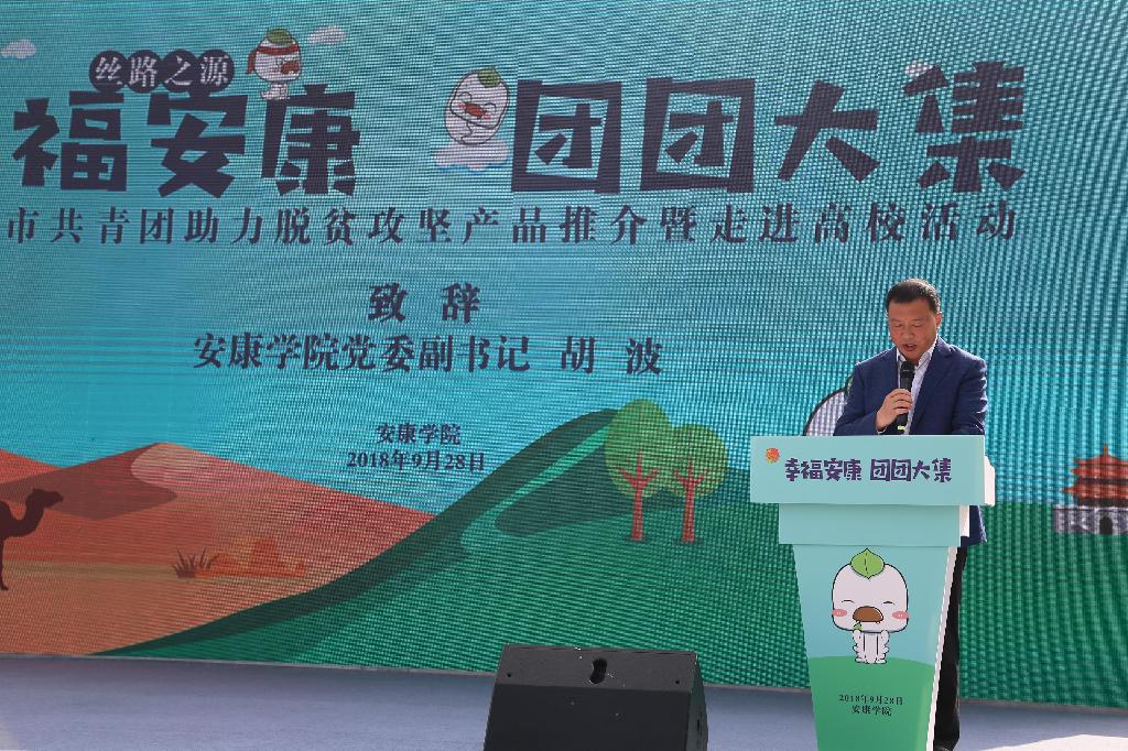 9月28日,“幸福安康 团团大集”安康市共青团助力脱贫攻坚产品推介走进高校活动在我校圆满落幕。市委常委、组织部长高晶华,市政协副主席黄骁勇,安康学院党委书记王国良、党委副书记胡波出席活动。团市委、校团委、各县区团委、相关扶贫企业参加了此次活动。