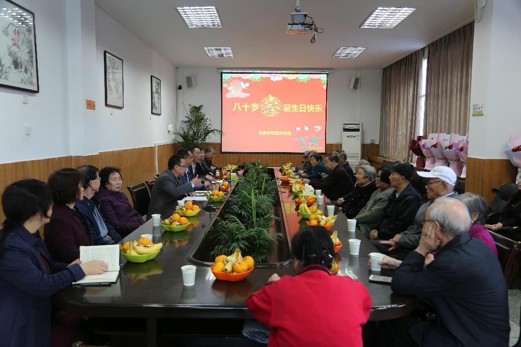 学校相关职能部门负责人,离退休三个支部的委员、青年教师代表等参加了祝寿会。