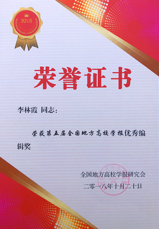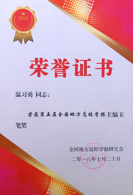 据悉,全国地方高校学报研究会评优活动每四年举办一次,旨在集中展示地方高校学报建设发展的成绩,发现新锐,奖励优秀,共同提高。本届评优活动共设“期刊奖”“栏目奖”“个人奖”“优秀编辑学论文论著奖”“特殊贡献奖”5个奖项,最终评选出名刊12种、精品期刊20种、优秀期刊28种;名栏28个、特色栏目31个;主编玉笔奖11名、优秀主编14名;优秀编辑63名;编辑学论文论著一等奖10项、二等奖21项、三等奖13项。