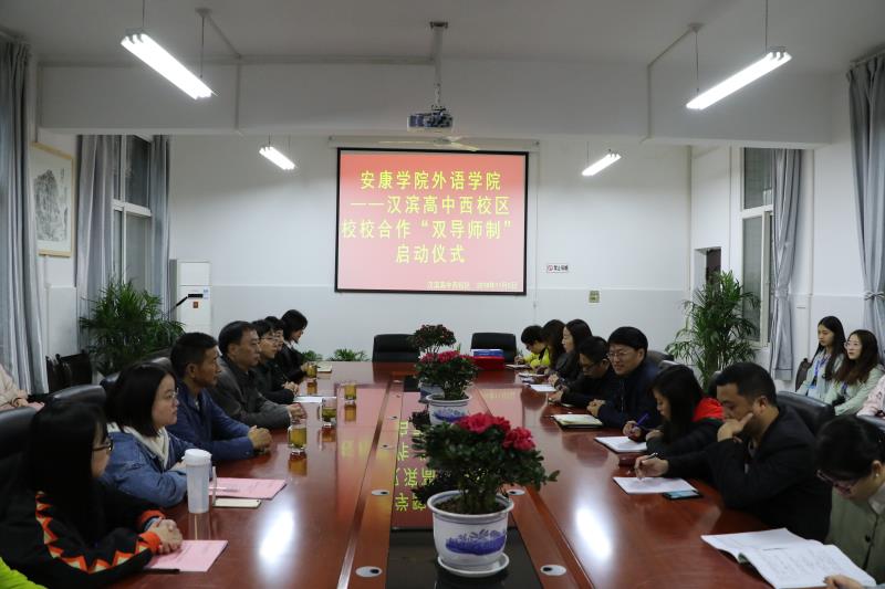 为有效贯彻《教育部关于实施卓越教师培养计划的意见》文件精神,积极构建卓越教师协同育人机制,大力推进院校合作,加强实践教学,落实应用型人才培养方案,努力营造良好实践育人环境,11月5日上午,我校外语学院师范生“双导师制”启动仪式在汉滨高中西校区举行。外语学院院长哈红光、党总支书记郭家平,汉滨高中西校区常务副校长、党支部书记韦祖安、副校长鄢麒麟,以及双方教师代表、英语师范生等共计30余人参加了启动仪式。仪式由外语学院副院长张哲华主持。