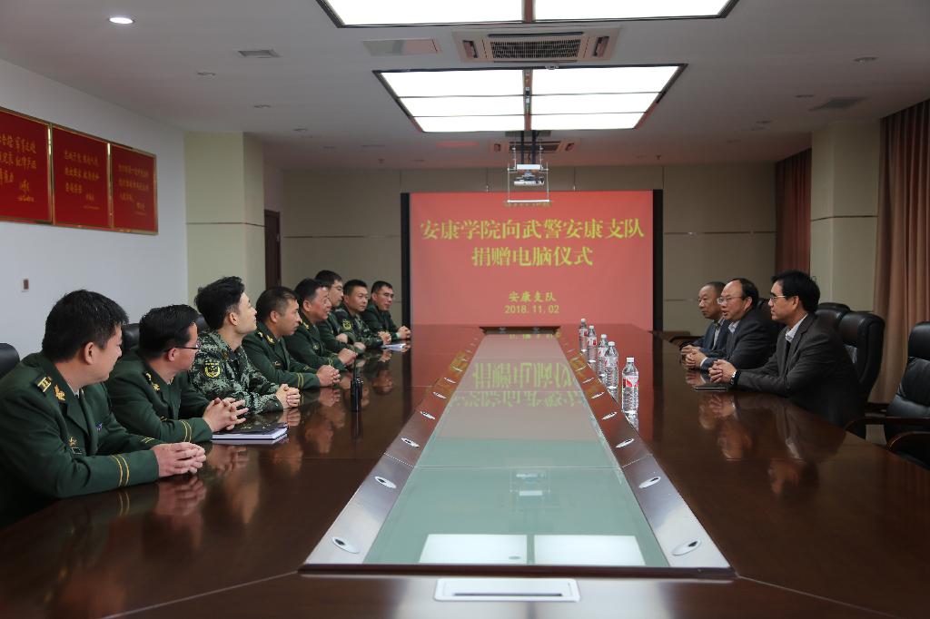为进一步加强新形势下双拥共建工作,携手共育社会主义建设者和接班人,11月2日,校党委副书记杨行玉带领学工部(学生处、武装部)负责人赴武警安康支队驻地开展慰问座谈活动。武警安康支队政委陈凯,副支队长侯新华、张建军等支队领导热情接待了杨行玉一行。