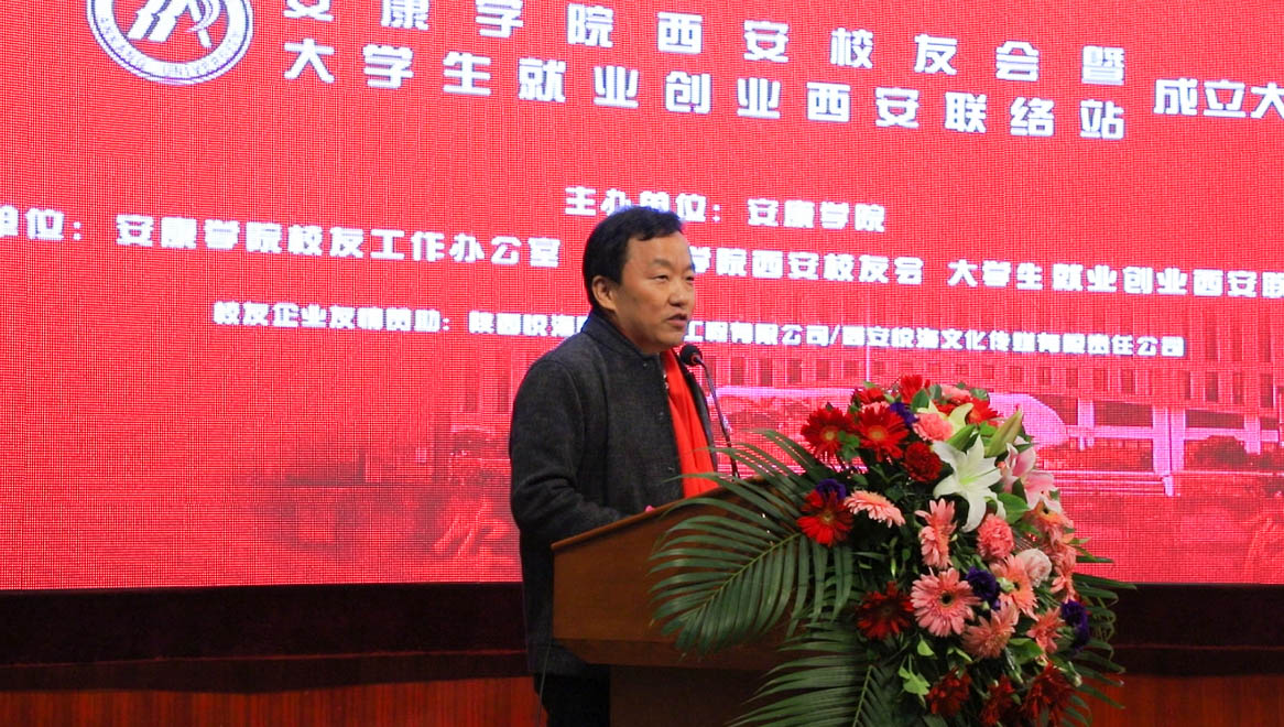 钟生海代表学校对西安校友会暨大学生就业创业西安联络站的成立表示热烈祝贺,向长期以来支持、关心学校建设与发展的西安校友表示衷心感谢,并向校友们介绍了学校近些年的新发展、新变化。他指出,一所大学的核心财富,在于她培养的一代又一代高质量的人才。校友是大学声誉和价值的存在,校友资源是学校最宝贵的品牌资源、精神资源、智力资源、人脉资源和财力资源,是母校事业发展最可信赖、不可替代的依靠力量。他希望西安校友会成为校友间沟通的平台、校友联系母校的纽带、校友的心灵港湾和精神家园。他鼓励广大校友在这个充满激烈竞争与无限机遇的新时代,秉承校训,砥砺前行,将“个人梦”融入“西部梦”,汇入中华民族伟大复兴的“中国梦”,共创幸福、出彩的人生。