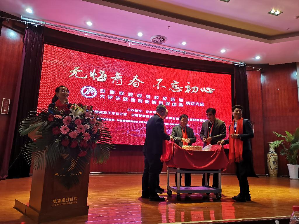 11月18日上午,安康学院西安校友会暨大学生就业创业西安联络站成立仪式在西安隆重举行。学校副校长钟生海出席大会,招就处处长丁义国、学工部部长李岩与来自西安各县区、各行业的近100名校友共同见证了安康学院西安校友会的成立。大学生创新创业协会会长翟晓东校友受邀参加大会。大会由校友办主任田静主持。