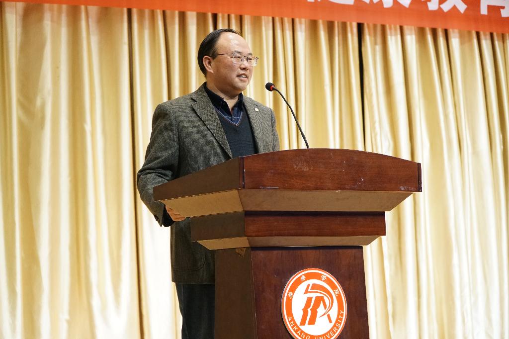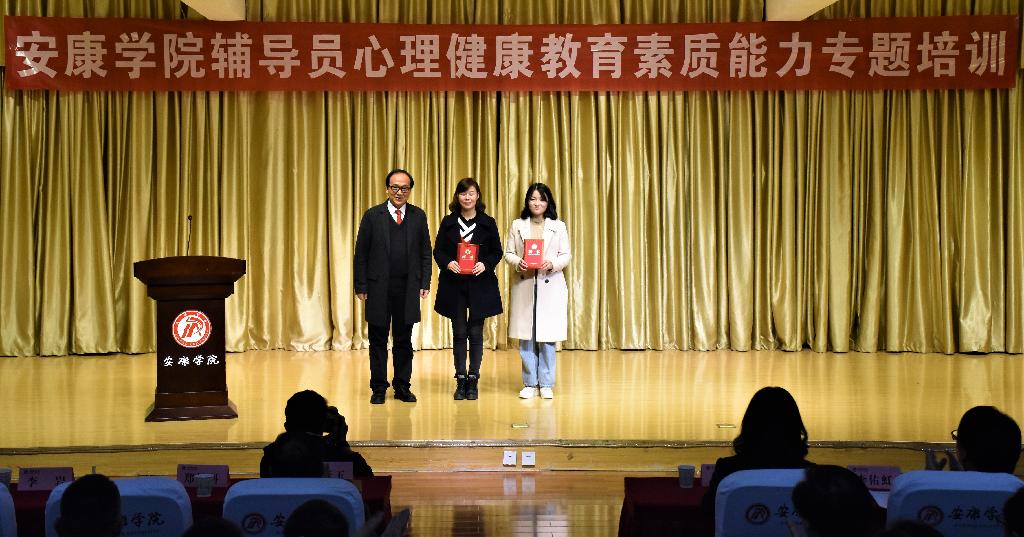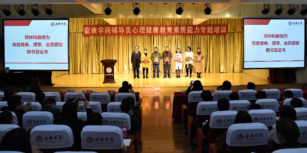 11月15日下午,陕西高校心理素质教育研究会常务理事单位授牌仪式暨安康学院辅导员心理健康教育素质能力专题培训会在江北校区1401演艺厅成功举办。陕西高校心理素质教育研究会会长、教育部国家精品课程心理学评审专家郑林科教授、我校党委副书记杨行玉出席会议。学工部负责人、心理健康教育中心教师、辅导员、班级心理委员以及来自安康职业技术学院学工人员共计200余人参加了本次培训会。会议由学工部部长李岩主持。