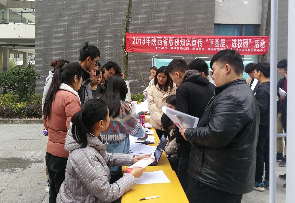 为进一步宣传普及著作权知识,增强版权保护意识和自主创新意识,11月20日下午,我校配合陕西省版权局、陕西省音像资料馆(陕西省版权保护中心)在江北校区开展版权保护宣传、版权登记工作。