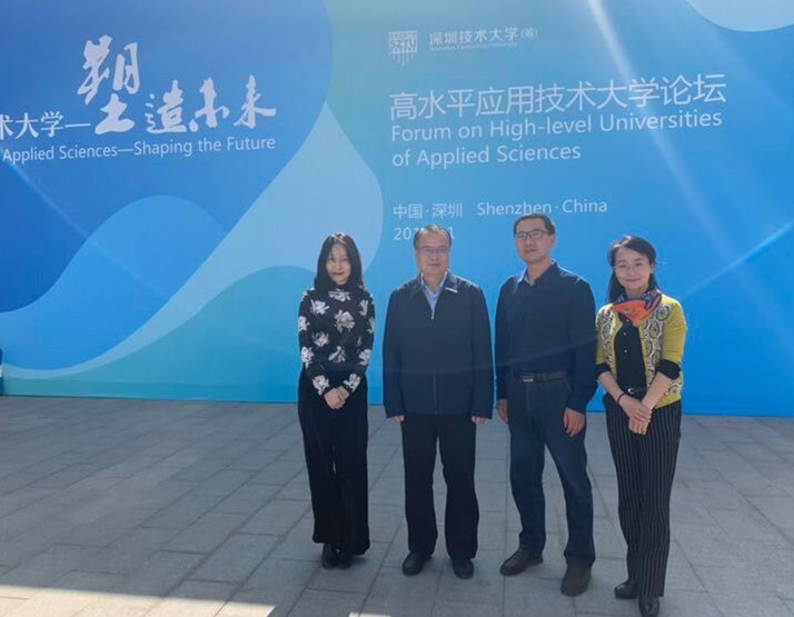 在深圳技术大学(筹),阮双琛校长接待了丁巨涛一行,双方就学校实践教学、国际合作办学等工作进行交流;丁巨涛与论坛嘉宾雷根斯堡应用技术大学、阿伦应用技术大学、维尔茨堡-施韦因富特应用技术大学等校方负责人就校际之间开展交换生学习、教师交流合作等项目进行沟通,探讨与德国应用技术大学合作办学的途径。本次论坛主题为University of Applied Sciences - Shaping the Future(应用技术大学——塑造未来),多名德国应用技术大学校长参加并做专题演讲,与参会者分享德国应用技术大学在国际化战略、教学模式改革以及应用型课程体系建设等方面的先进办学理念和成功经验。通过本次高水平国际论坛,我校建立起与德国应用技术大学合作的桥梁,对提升学校国际合作与交流工作水平起到了促进作用。