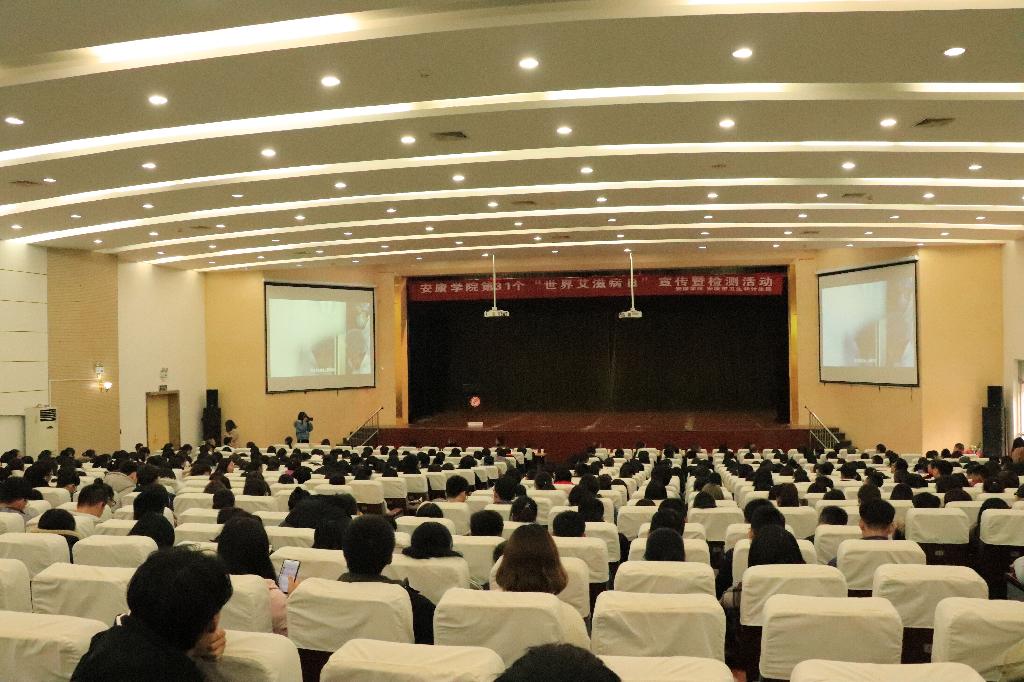 2018年12月1日是第31个“世界艾滋病日”。为提高大学生艾滋病防治知识和自我保护意识,加强学校艾滋病防控工作,保障大学生身体健康,11月29日下午,我校与安康市卫生和计生局、安康市疾控中心及汉滨区新城办在江南校区大礼堂联合举办了以“主动检测、知艾防艾、共享健康”为主题的预防艾滋病健康教育宣讲活动。学校党委副书记胡波、安康市疾控中心副主任周玲、安康市卫生监督所副所长胡晓龙、安康市卫生和计生局疾控科科长李毅及我校相关部门负责人出席了本次活动。