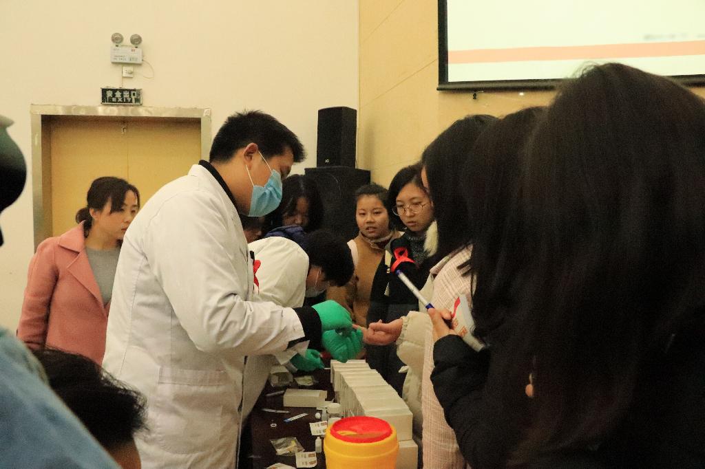 讲座结束后,生物检验科工作人员对现场部分学生进行了艾滋病初筛检测。广大师生表示艾滋病虽然可怕,但其传播方式明确,只要在平时的生活中培养良好的习惯、纠正不良行为,完全可以预防。