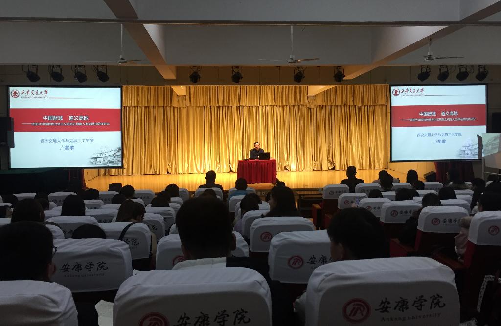 12月4日晚,西安交通大学卢黎歌教授应邀前来我校,在江北校区1401演艺厅为师生做题为“中国智慧,道义高地——推动构建人类命运共同体”的学术讲座。党委宣传部、政社学院师生与安康职业技术学院思政部教师共120余人聆听了讲座。政社学院院长、思政部主任何家理教授主持了报告会。