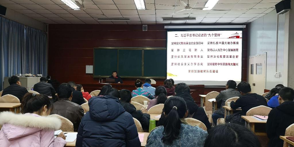 开班式结束后,胡波围绕学习贯彻《习近平总书记在全国教育大会上的重要讲话精神》,从教育大会的重大战略意义、习近平总书记关于教育的重要论述,以及如何推动教育大会精神在我校落地生根、开花结果做了专题辅导。他指出习近平的讲话精神是我校今后办学的方向,我们将切实加强党委对学校工作的全面领导,推进党的建设,进一步确保学校坚持社会主义办学方向,培养德智体美劳全面发展的社会主义建设者和接班人。