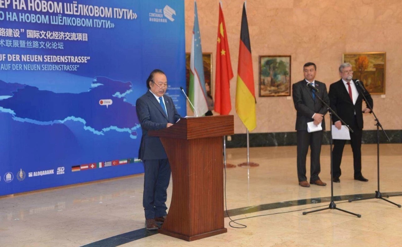 12月12日,“新丝路上的蓝色集装箱·一带一路建设”国际文化经济交流项目——“水墨陕南 丝路之源”艺术大展在乌兹别克斯坦国家美术馆盛大开幕,来自乌中德三国的重要嘉宾出席了开幕仪式。我校艺术学院教师、陕南画院院长章长青受邀参加了此次艺术大展,并为活动剪彩开幕。