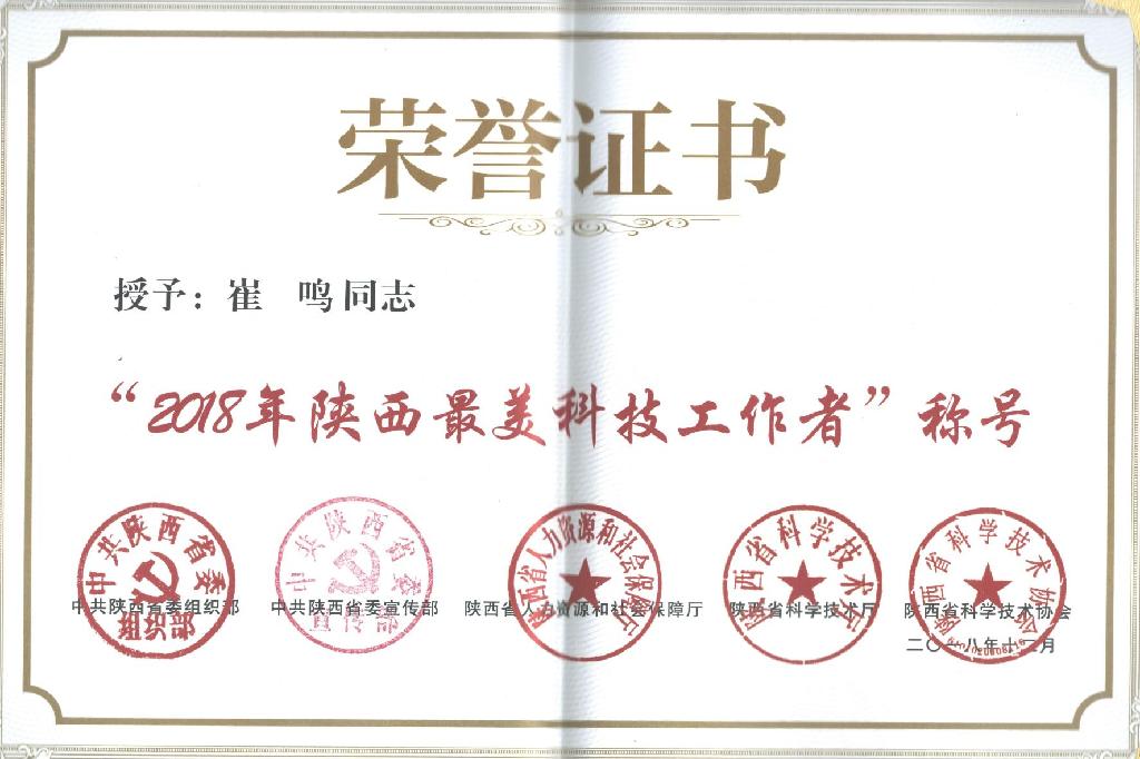 日前,由省委组织部、省委宣传部、省科技厅、省人社厅、省科协共同主办的2018年“陕西最美科技工作者”表彰会在西安召开,30位长期奋战在基层科研一线、事迹突出的优秀科技工作者获此荣誉。省委副书记贺荣会见了获奖人员,代表省委向获奖者表示祝贺,并对全省广大科技工作者提出殷切期望。我校学科首席专家、二级研究员崔鸣获奖。