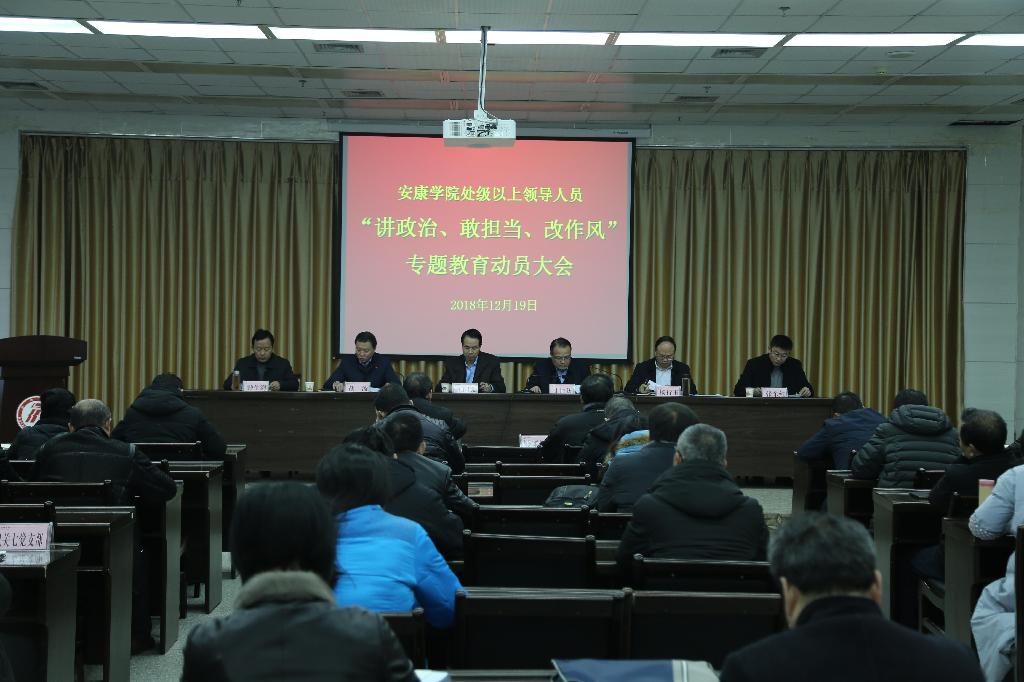 党委副书记胡波宣读《中共安康学院委员会印发<关于在全校处级以上领导人员中开展“讲政治、敢担当、改作风”专题教育实施方案>的通知》,就我校专题教育工作做出具体安排部署。