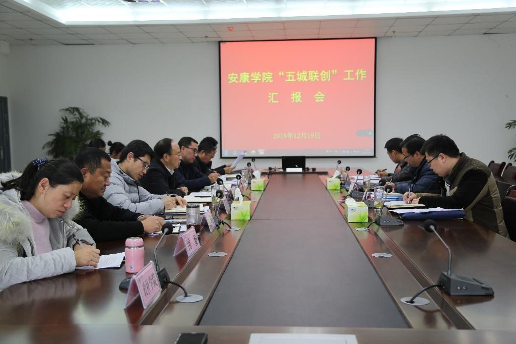 座谈会上,杨行玉强调安康学院作为安康市唯一的一所本科院校,多年来始终坚持“服务基础教育、服务‘三农’、服务区域经济社会发展”的办学方向,以促进安康经济社会发展为己任。“五城联创”是安康市委市政府的一项重要工作部署,安康学院理应在城市环境改善、文化内涵建设和市民文明素养提升等方面做出积极贡献。他同时指出,2018年安康学院高度重视“五城联创”工作,建立健全了学校统一领导、五个工作组各负其责的组织机构和工作机制,积极发挥学校在教育、人才、文化等方面的优势,精心设计规划,广泛动员宣传,强化人力和经费保障,加强督办督查,采取有力措施推动创建工作取得了实效。学校成立的五个专门工作组负责人分别对创文、卫生、环保、综治、绿化等工作以及帮扶七里沟社区创建工作进行了汇报。