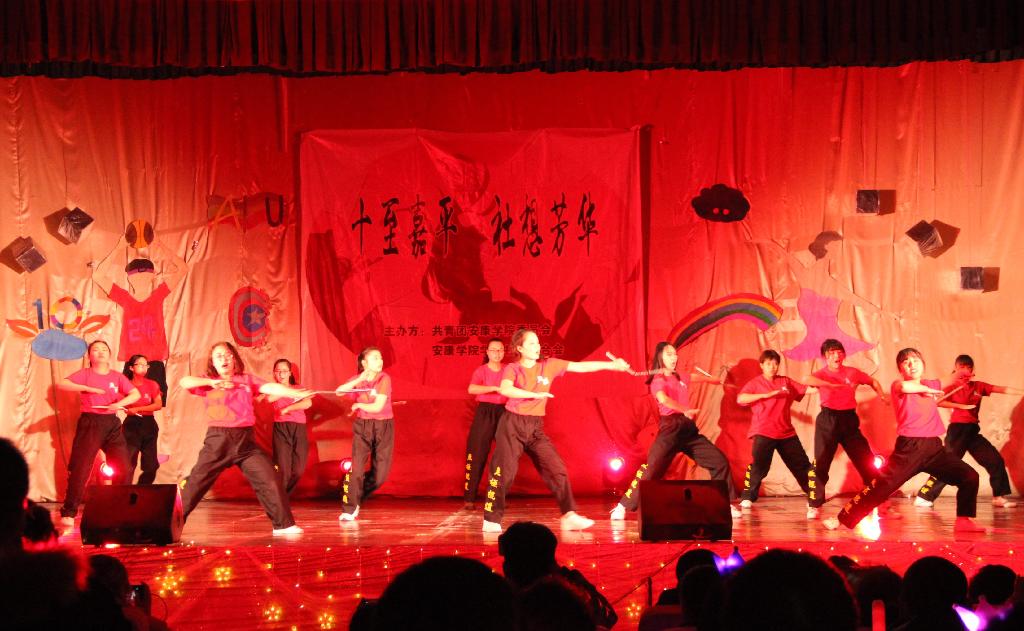 晚会以活力四射、激情洋溢的《安塞腰鼓》拉开了帷幕。双截棍协会的武术融合《舞动青春》、茶艺社和汉服社的古风表演《观音韵》和《醉花阴》、跆拳道社的拳脚冲击《跆风来袭》、轮滑社的滑动艺术《奈何泰山太倾城》、SOSO动漫堂的二次元舞台剧《狐妖小红娘》、微光剧社的喜剧小品《四大才子》和《打劫》以及留学生的舞蹈表演,以多样式、深内涵、精表演的文艺表现形式,以宽范围、多群体、高要求的文艺展示目标,为现场观众呈现了一场精彩纷呈的视听盛宴。