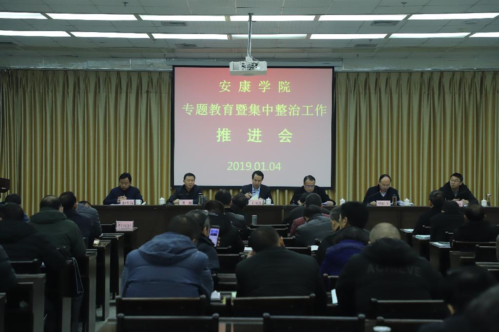 按照省委、省纪委认真开展“讲政治、敢担当、改作风”专题教育、集中整治形式主义官僚主义、违规收送礼金问题专项整治等几项重点工作的安排部署,2019年1月4日下午,我校在图书馆六楼报告厅召开专题教育暨集中整治工作推进会。学校党委书记王国良,校长丁巨涛,副书记胡波、杨行玉,副校长钟生海、张东红等出席了会议。学校副处级(含)以上干部参加了会议。王国良做要求讲话,丁巨涛主持会议。
