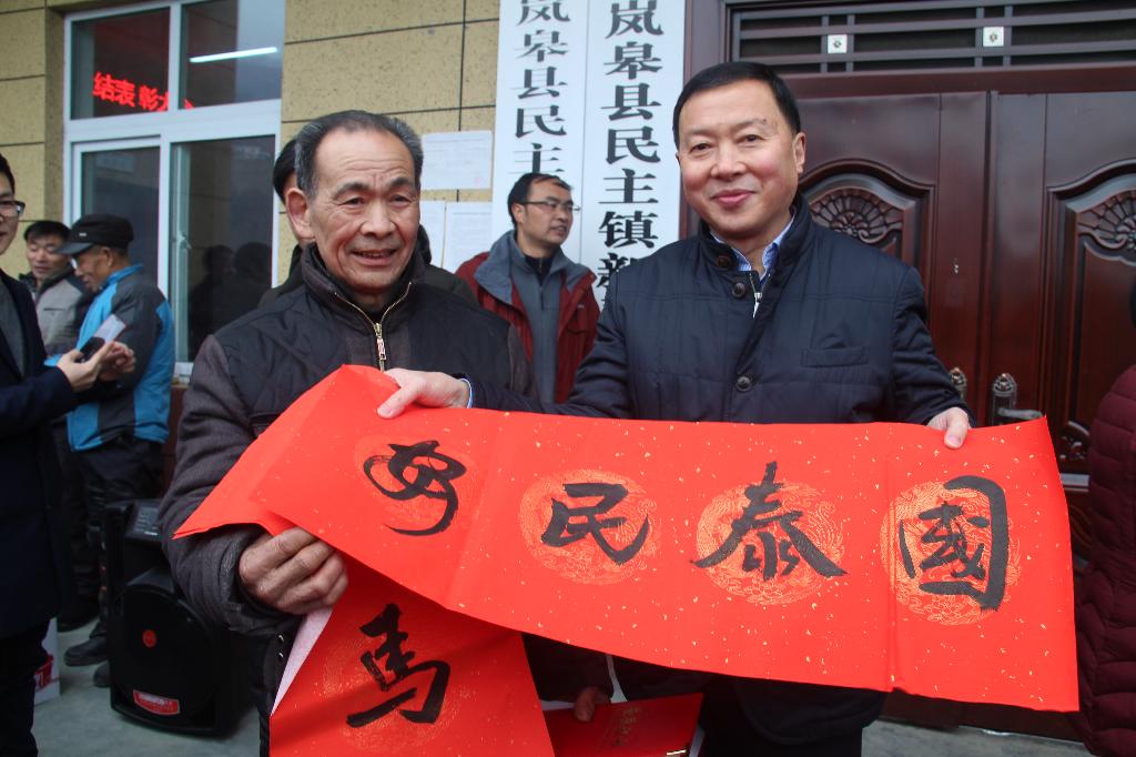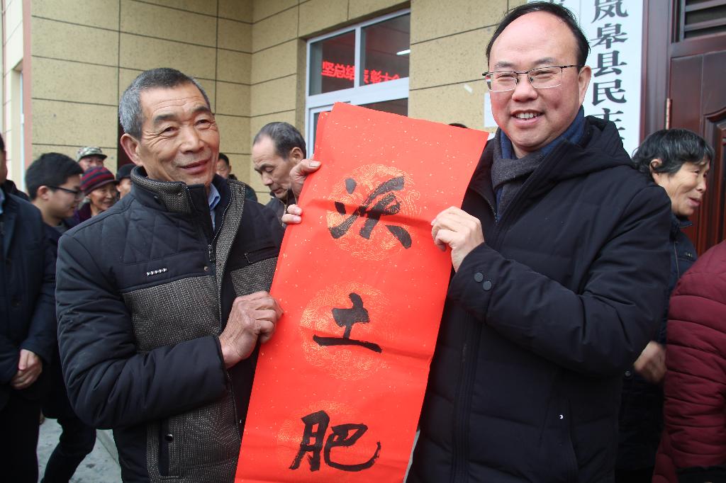 会议结束后,胡波、杨行玉还深入贫困户家中进行了慰问,为他们送去了粮油等春节慰问品和节日祝福。章长青、张富华、张纪生、梅向东等老师现场泼墨,为新喜村村民书写、赠送春联200多幅。