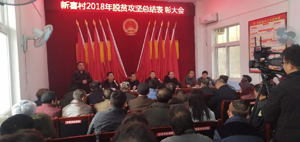 符绳发就2019年脱贫攻坚工作进行了安排部署。杨登凯就异地移民搬迁、“三变改革”、医疗保险等扶贫政策进行了解读。杨发文宣读了《新喜村2018年脱贫攻坚工作表彰决定》,对124名产业发展标兵、致富带头人、敬老爱亲模范、热心公益先进、脱贫攻坚先进工作者、崇文重教先进个人和自强自主脱贫户进行了表彰奖励。