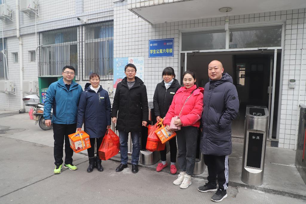 2月5日(大年初一)上午,副校长张东红代表学校党政领导在党政办、保卫处、后勤处等部门负责人的陪同下,先后到南、北校区慰问仍值守在岗位的工作人员。