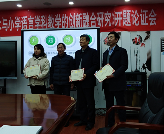 2月25日下午,我校教育学院院长黄路阳、艺术学院院长杨哲应汉滨小学邀请,参加了汉滨小学“十三五”规划课题“信息技术与小学语言学科教学的创新融合研究”开题论证会。汉滨区教体局关富平股长参加开题会,宣读了汉滨小学课题立项文件,并向黄路阳教授和杨哲教授颁发了课题指导专家的聘书。