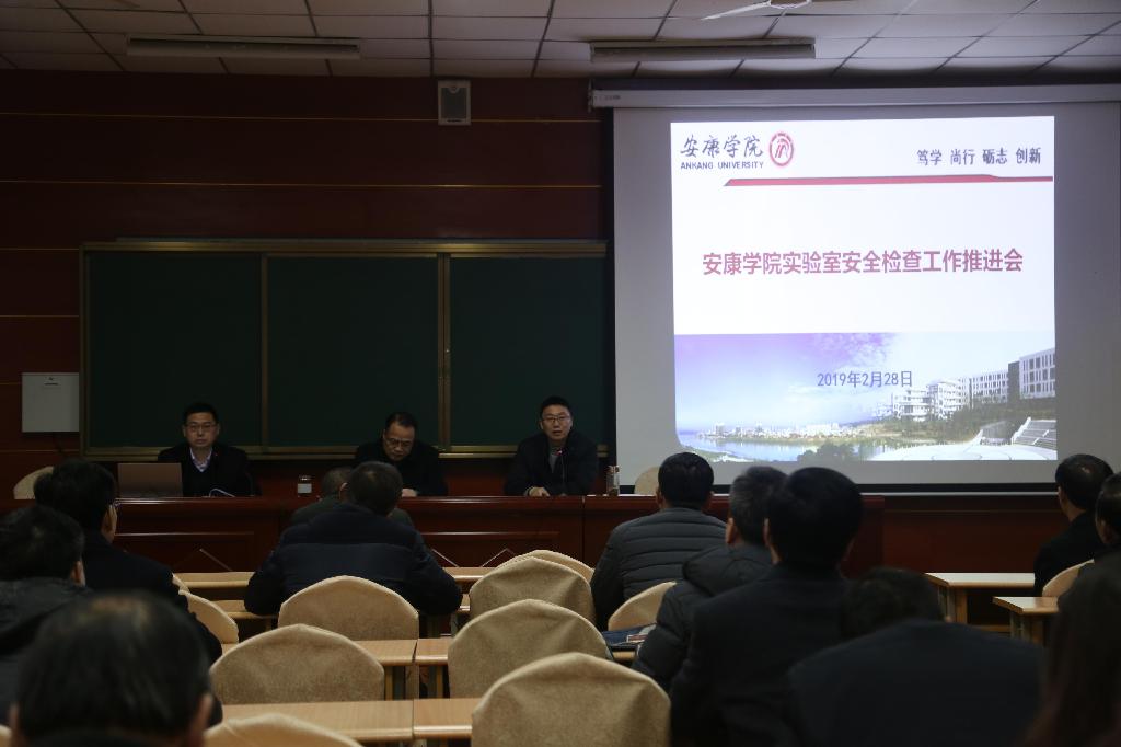 为全面贯彻落实国务院安委办高校实验室安全管理工作视频会议及省教育厅《关于印发<陕西高校实验室安全检查实施方案>的通知》等文件精神,进一步加强我校实验室安全管理,预防实验室安全事故的发生,确保广大师生人身安全和校园和谐稳定,近日,学校在江南校区召开实验室安全检查工作推进会。校长丁巨涛出席会议并讲话,相关职能部门负责人,二级学院院长、书记参加会议。会议由副校长张东红主持。