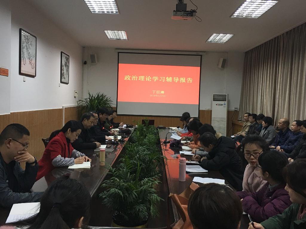 丁巨涛解读了2019年1月17日习近平总书记在天津考察调研,到南开大学参观校史展览、察看元素有机化学国家重点实验室时的讲话精神,指出专家型教师队伍是大学建设的基础性工作,要始终抓紧抓好;结合国家对于新时期“四有”教师的要求,丁巨涛要求教师在科研中要重视研究范式的运用;要提升合作意识,重视构建团队;注重学科交叉,注重不同学科的互补;要有刻苦勤奋的研究精神。