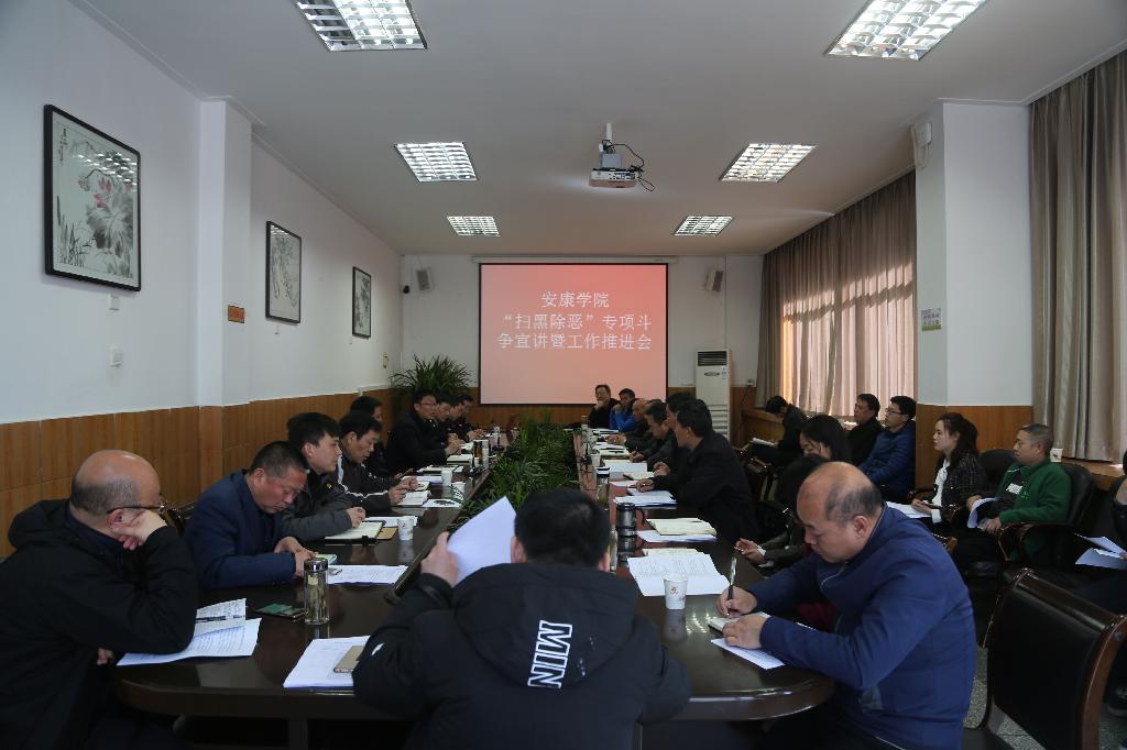 为深入贯彻习近平总书记重要指示精神,贯彻落实中省重大决策部署,推动 “扫黑除恶”专项斗争工作深入开展,3月12日我校在江南校区召开“扫黑除恶”专项斗争宣讲暨工作推进会议。安康市扫黑办副主任、市公安局刑侦支队政委张少华,市公安局国保支队、经文保支队长杨斌,经文保支队熊函山等应邀参加会议。副校长张东红出席并主持会议,相关职能部门主要负责人、各二级学院党总支书记参加了会议。