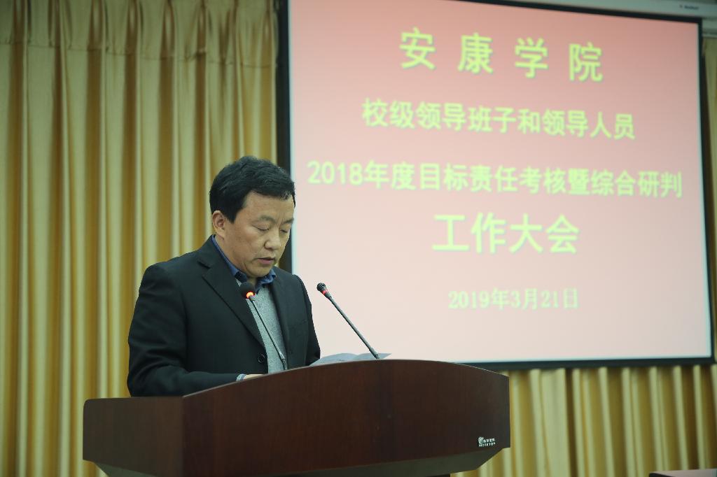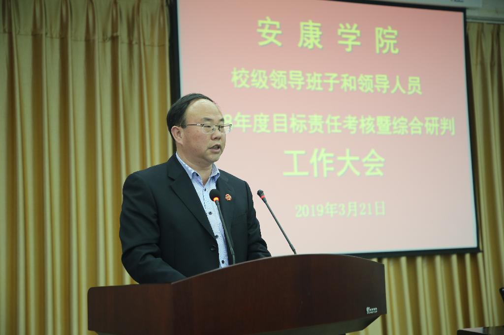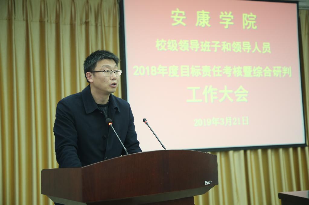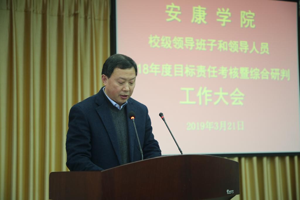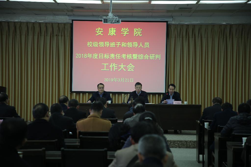 3月21日下午,陕西省属高校领导班子和领导人员目标责任考核暨综合研判第四工作小组组长、省委组织部副巡视员王建忠一行9人,莅临我校开展领导班子和领导人员2018年度目标责任考核暨综合研判工作。考核研判工作大会在我校江南校区图书馆六楼报告厅召开,学校领导班子全体成员、党委委员、纪委委员、学术委员会委员、工会委员,正高职称专业技术人员、正处级领导干部,省“两委”委员、市级人大代表、政协委员,民主党派主要负责人等近100人参加了会议。大会由校党委书记王国良主持。