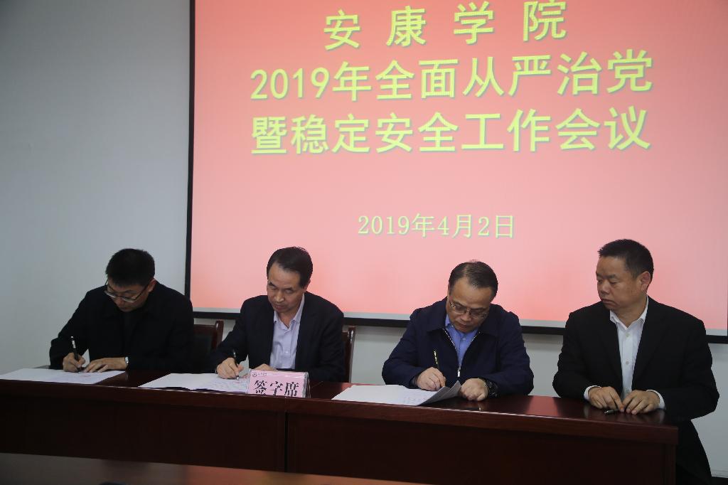 王国良、丁巨涛代表学校党委、行政,分别与学校领导副职,二级学院党政负责人、党总支书记代表,直属党支部及职能部门代表签订了《全面从严治党工作责任书》《稳定安全工作目标管理责任书》《消防安全责任书》和《意识形态工作责任书》。